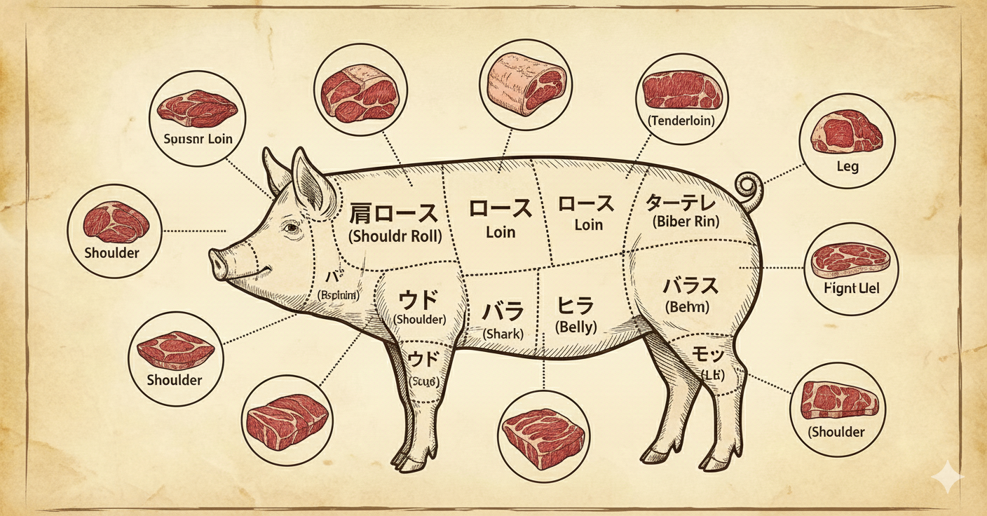ヤキトン屋やとんかつ屋でメニューにある豚肉の部位を表示しています。こちらで確認してから注文してみてはいかがでしょうか